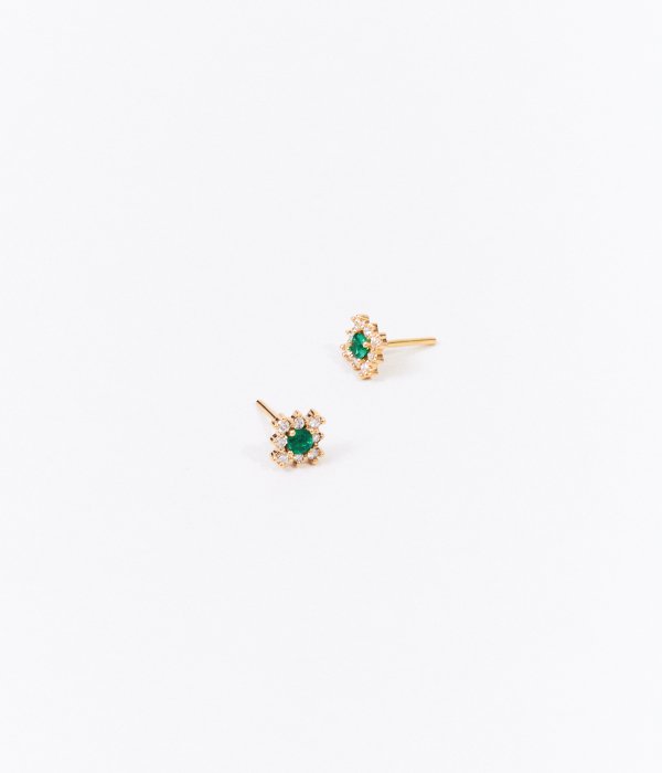 Aretes cuadrados de diamantes y esmeralda.