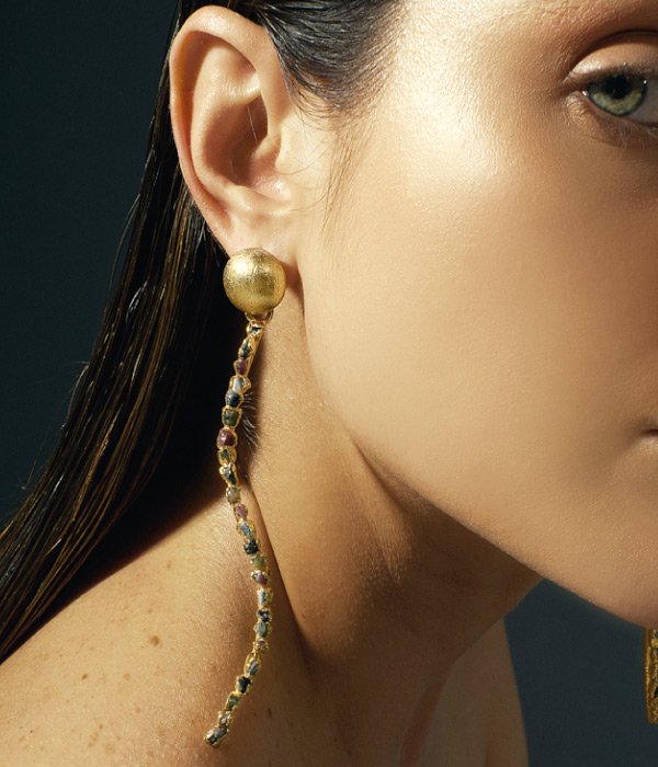 Aretes curvos con turmalinas.