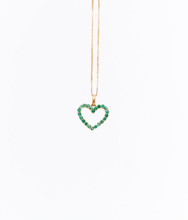 Dije corazón de esmeraldas.
