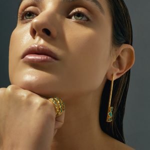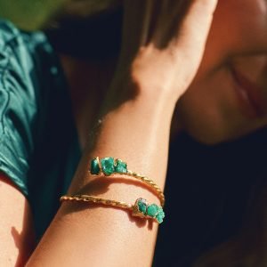 Trabajamos diseños con esmeraldas en bruto fundidas en bronce con baño en oro de 24 quilates. También encontrarás piezas con diseños precolombinos creados por nuestros indígenas colombianos hace más de 500 años, los cuales se exhiben en el Museo del Oro ubicado en Bogotá.